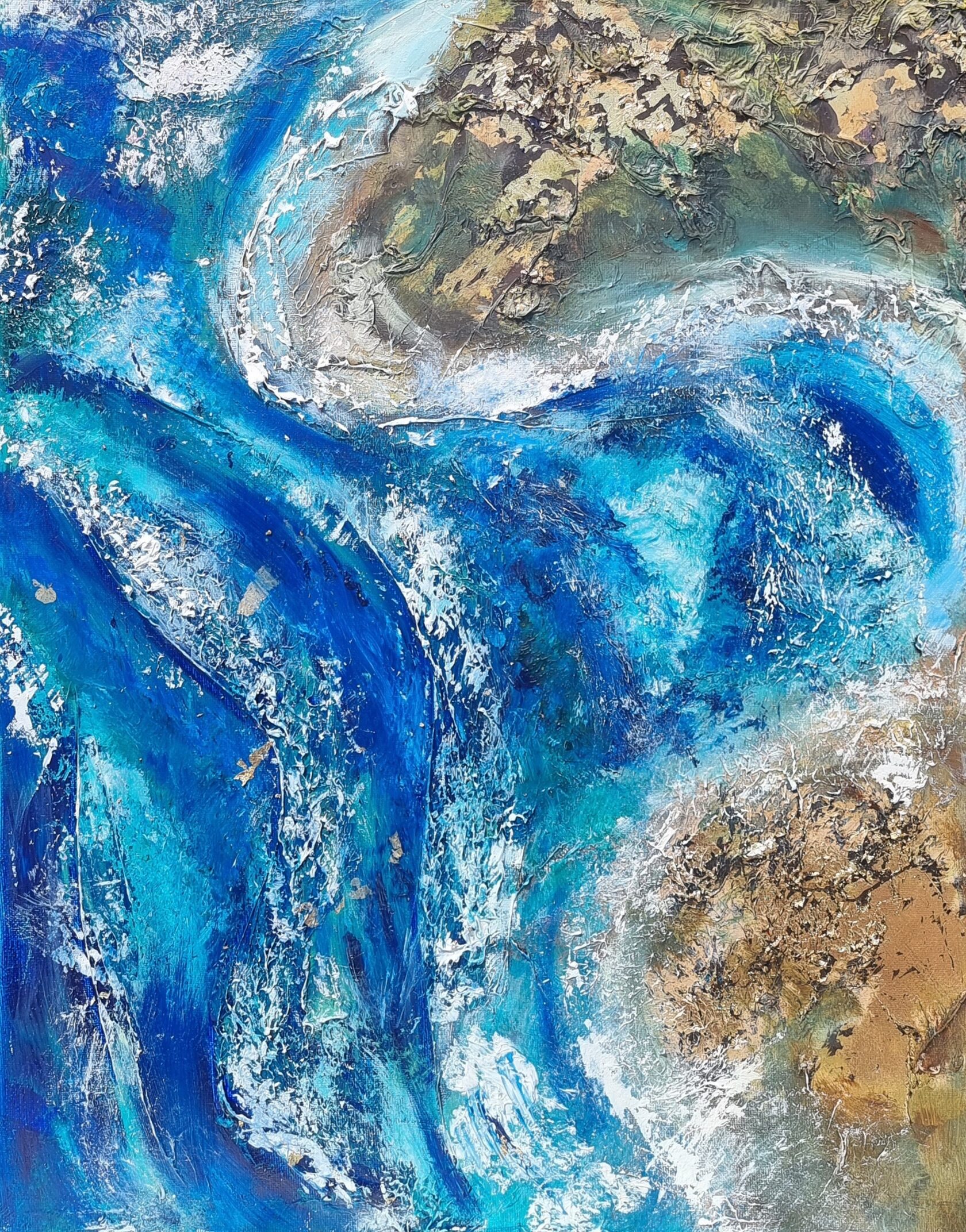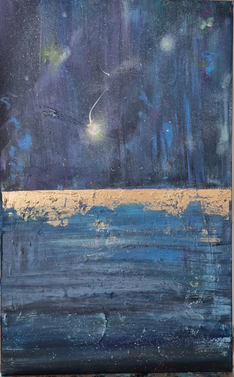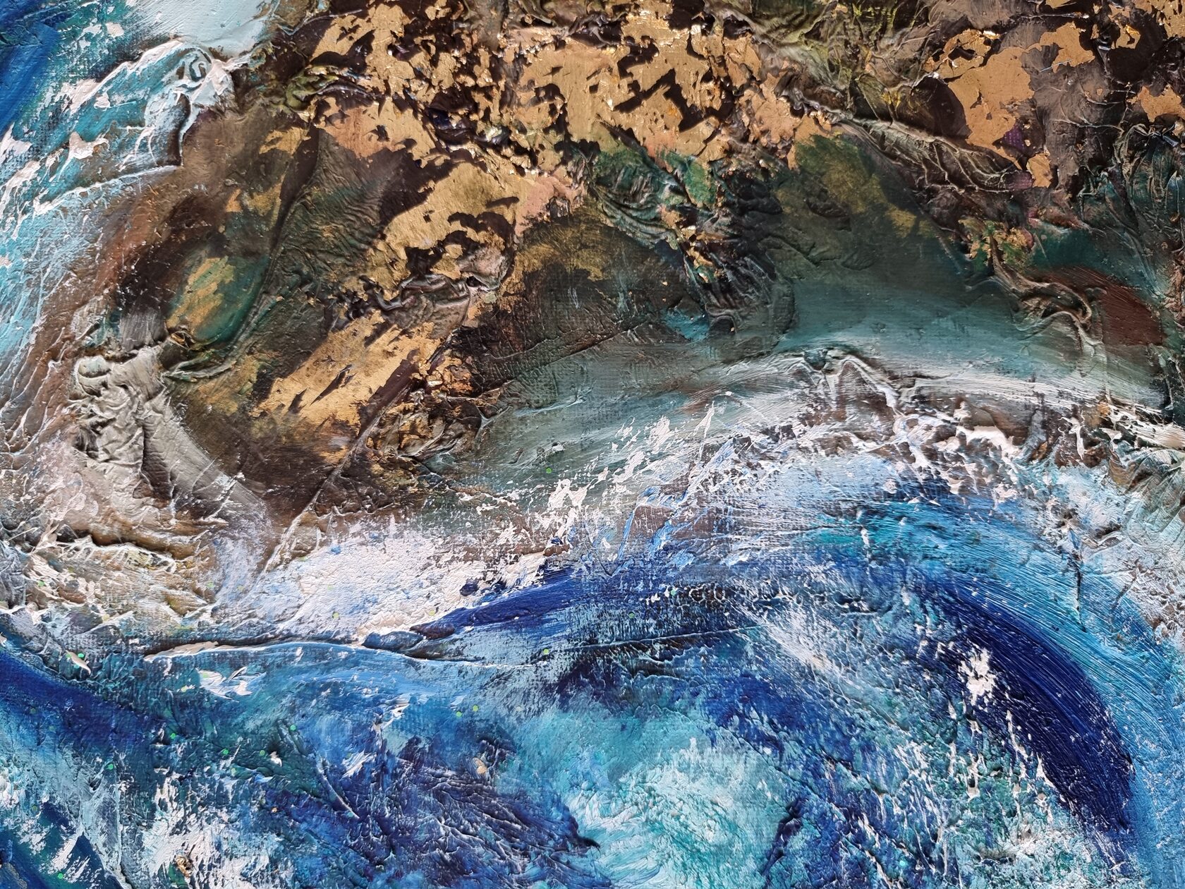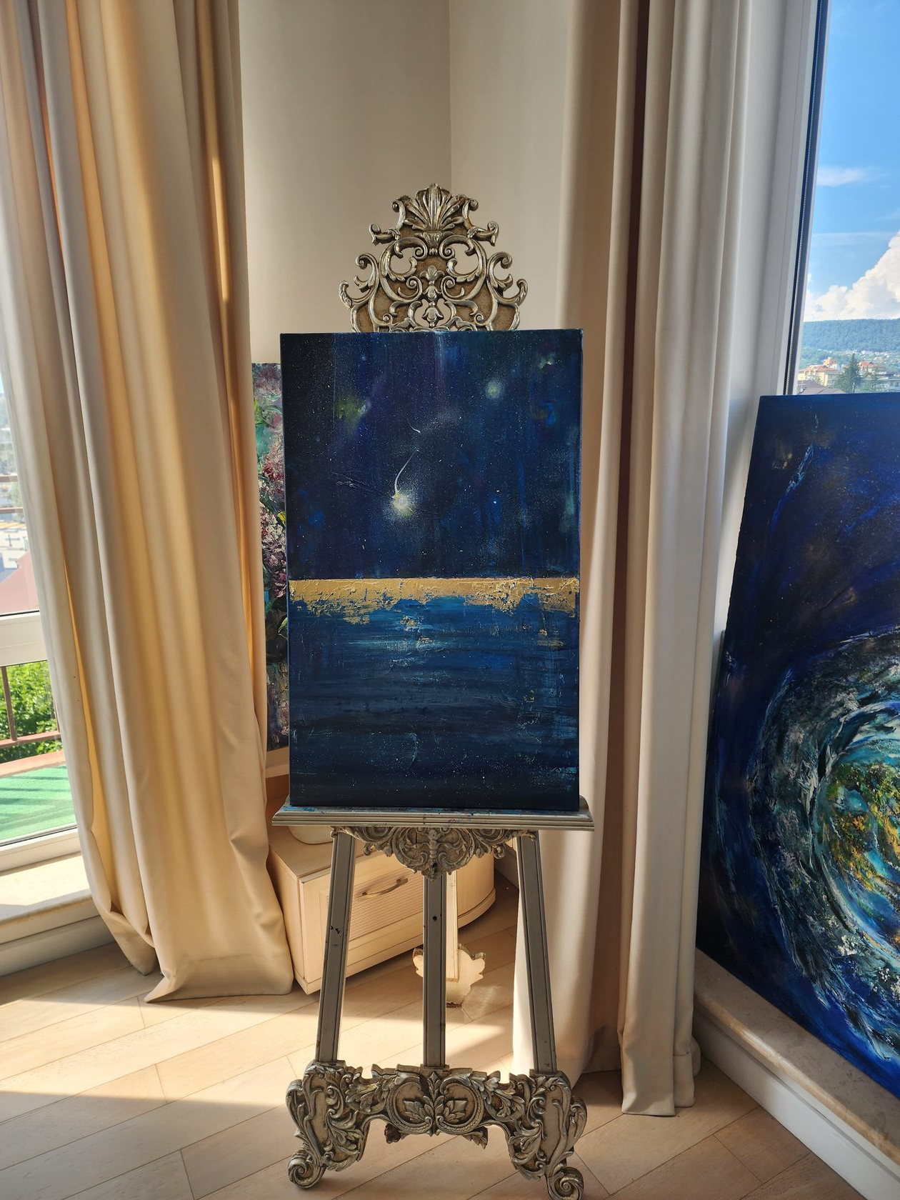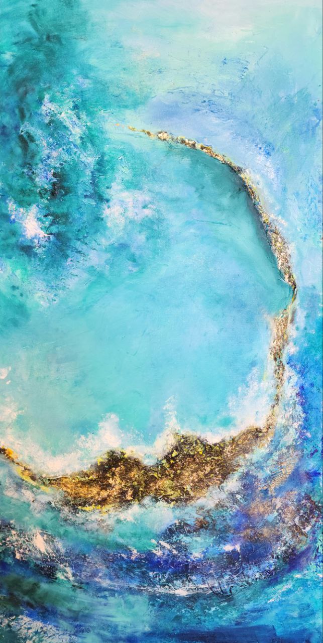 Лазурный берег, 2025 холст, масло, поталь смешанная техника 50*100
