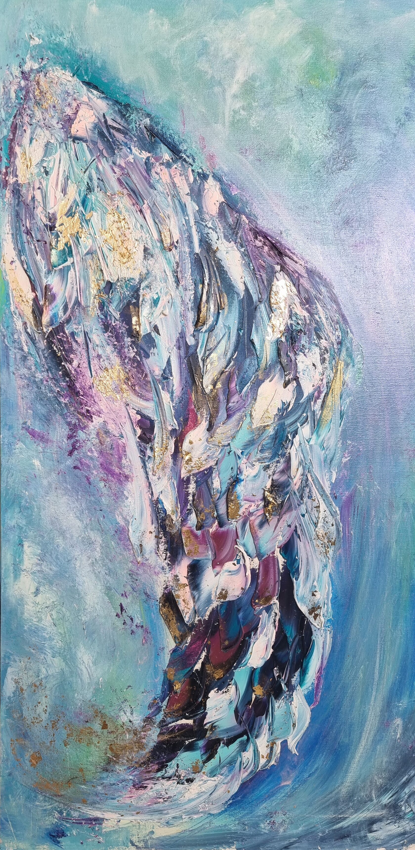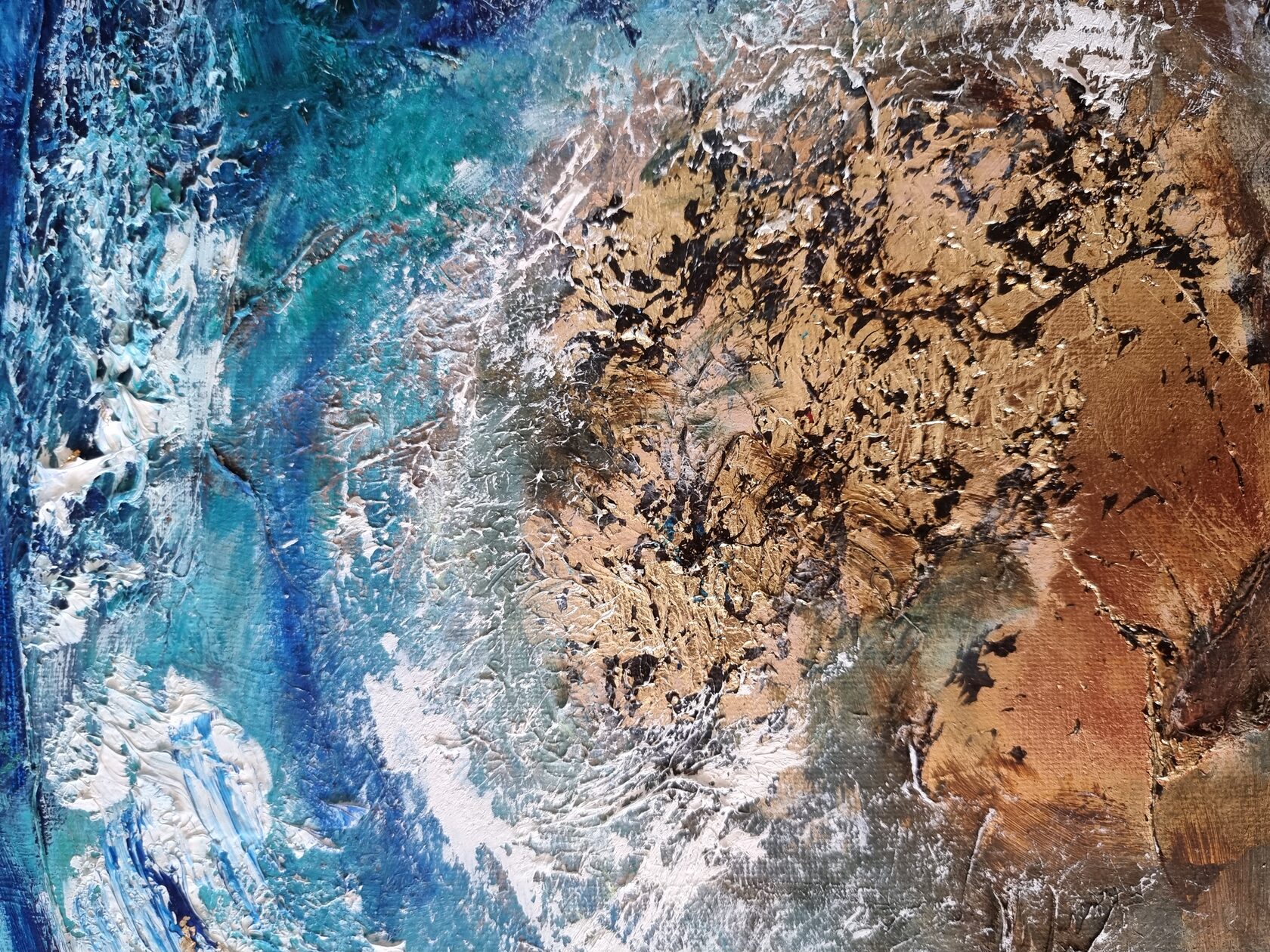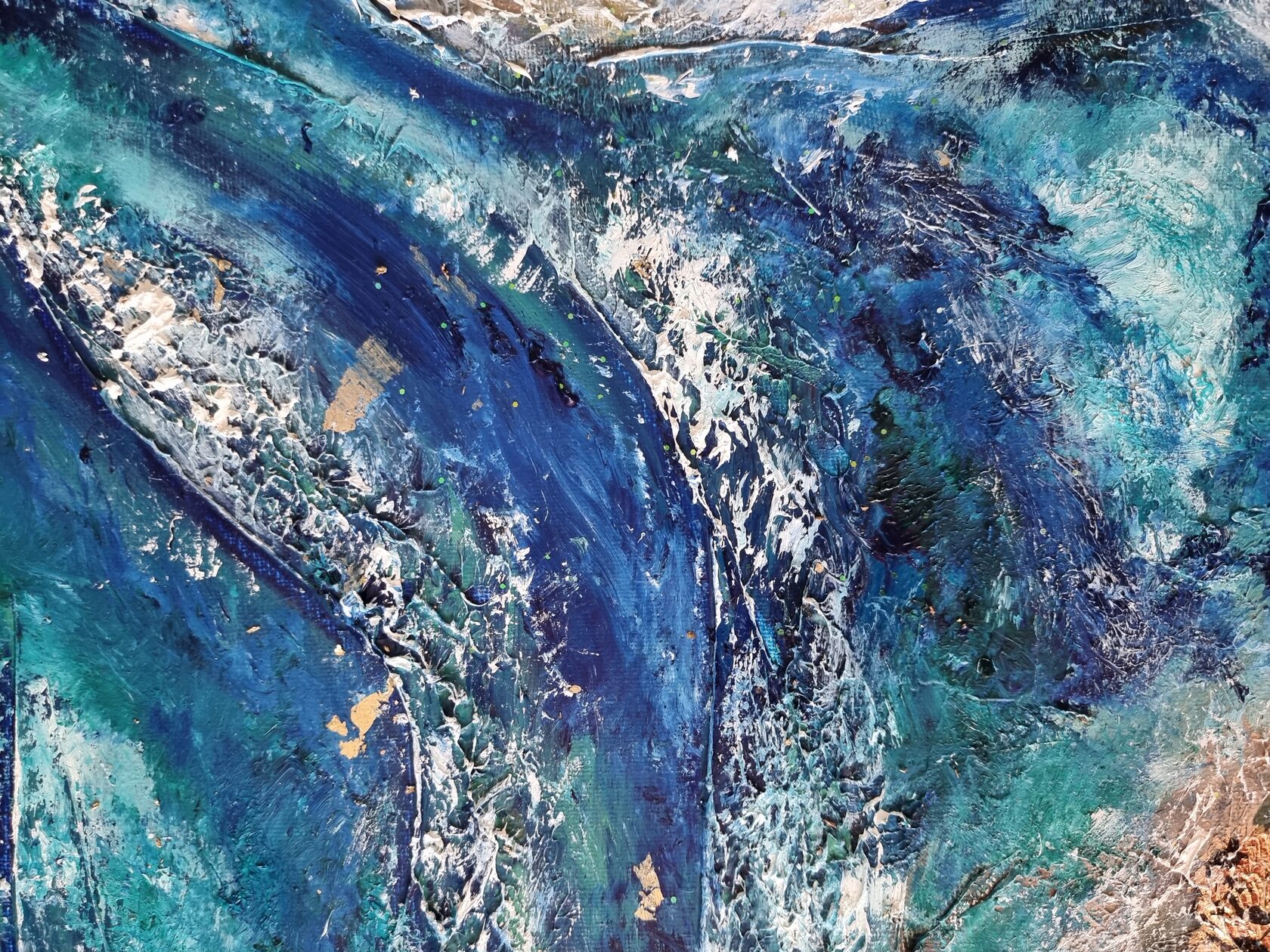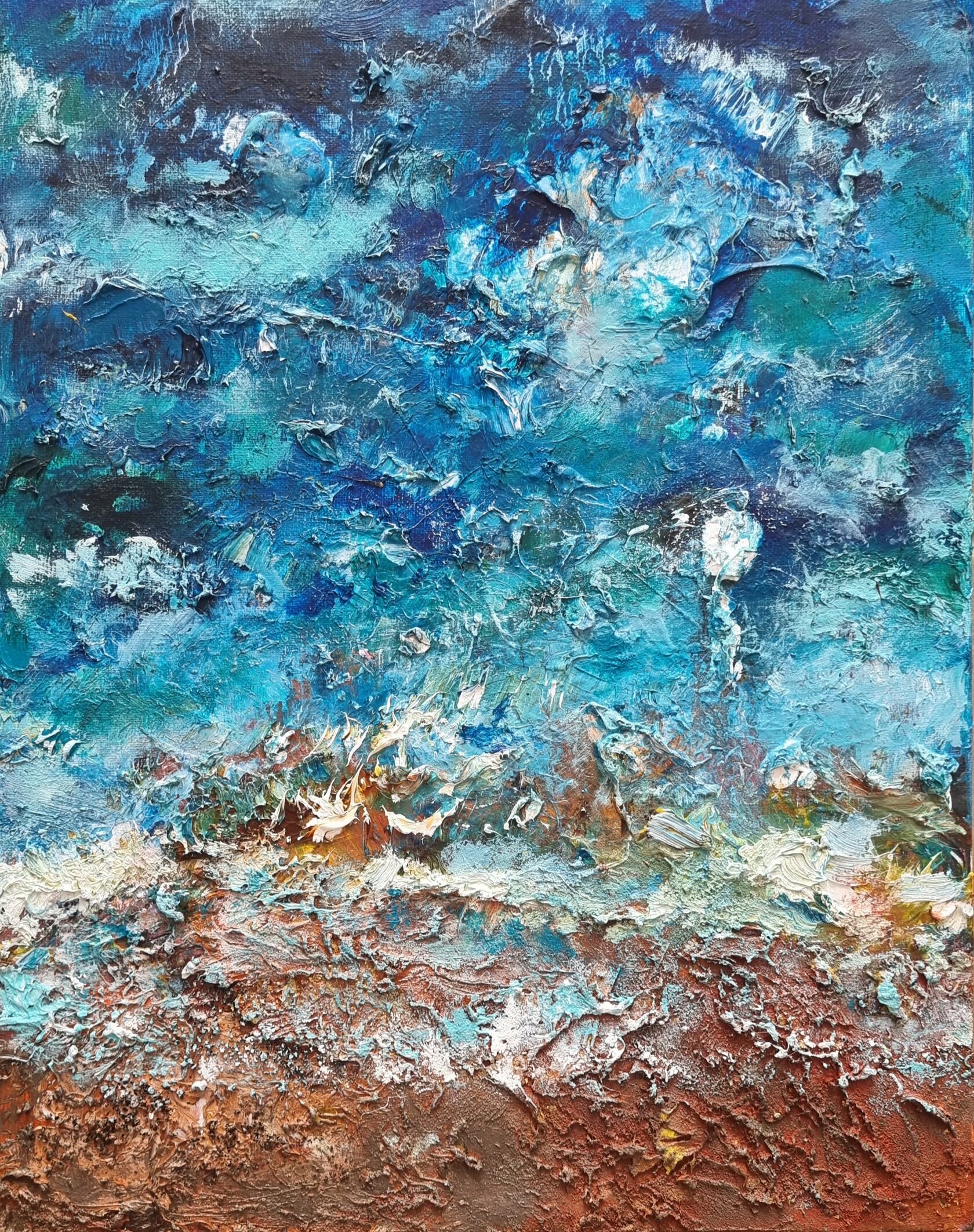 Лазурный берег, 2025 холст, масло, поталь смешанная техника 50*100