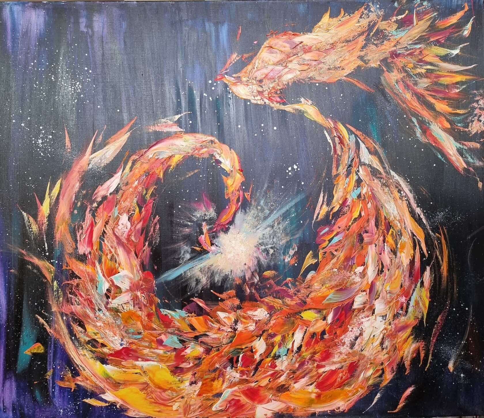 Феникс, рождающий мир 2021 холст, масло размер 100\120