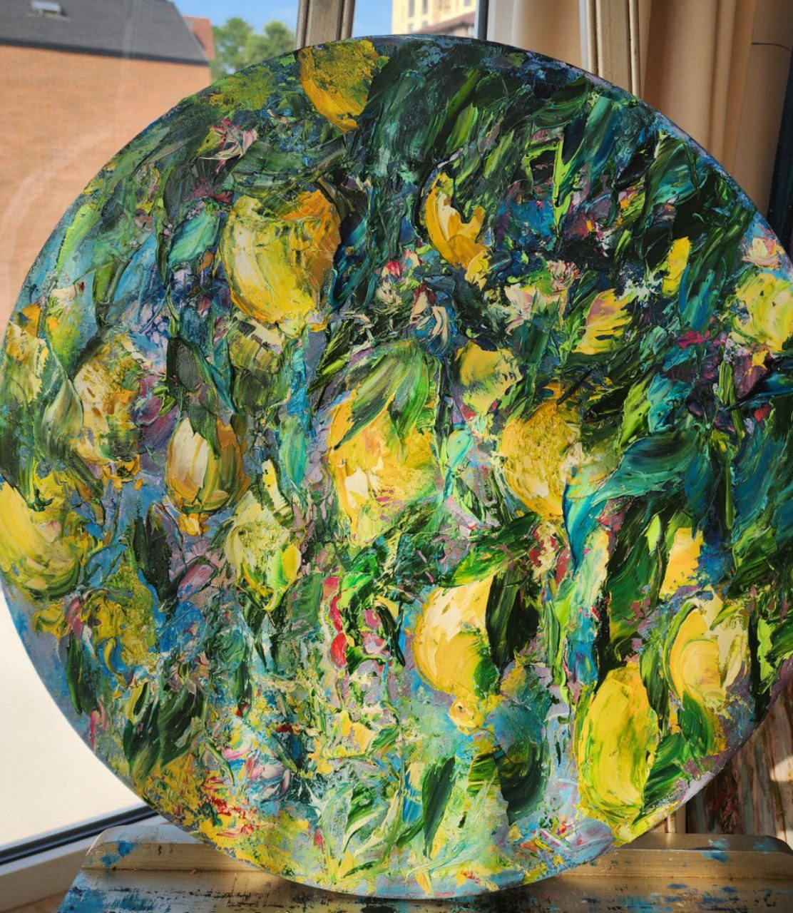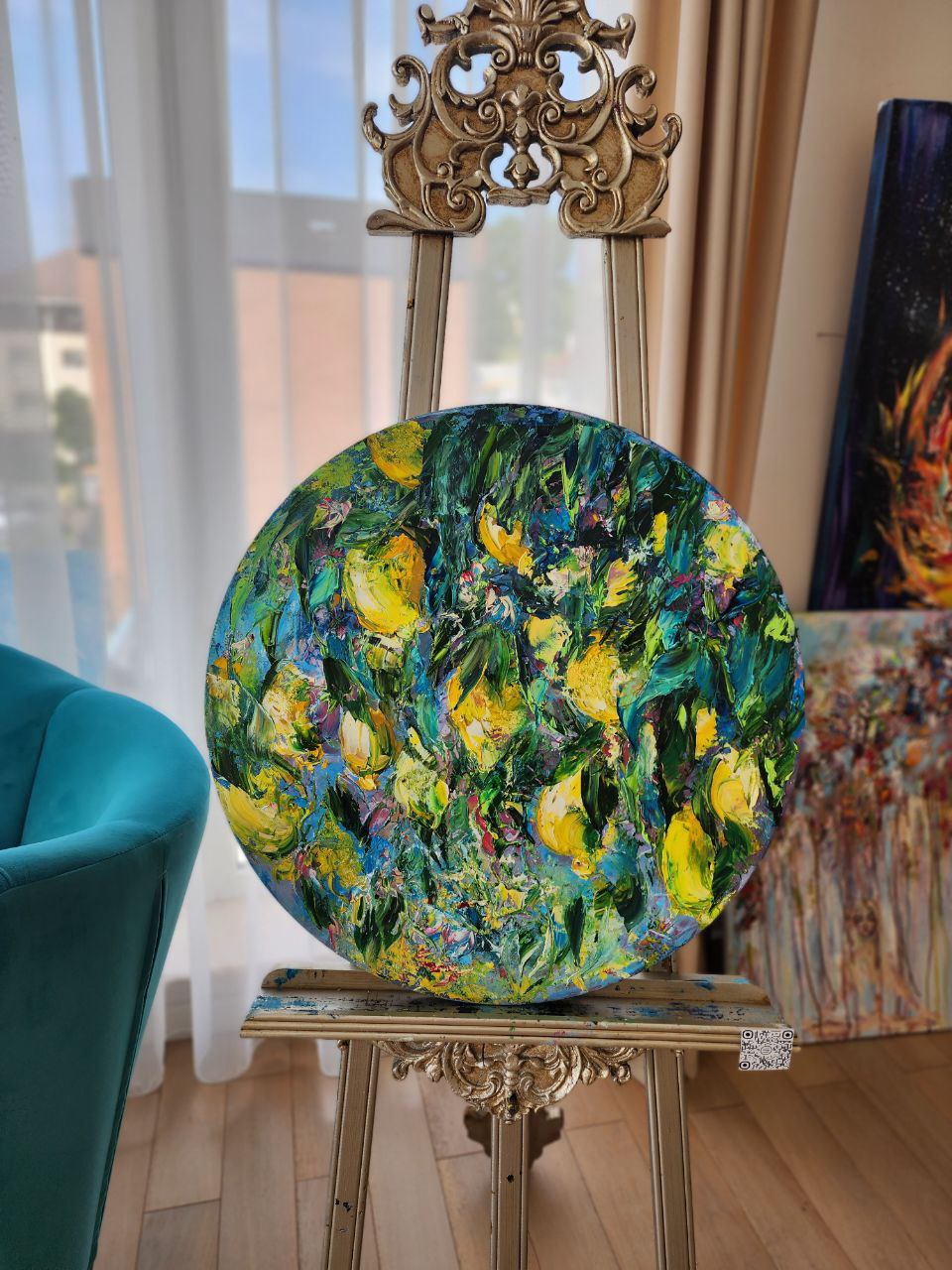 картина круглой формы несет энергию процветания и благополучия, ароматы и невесомый воздух знойной Италии