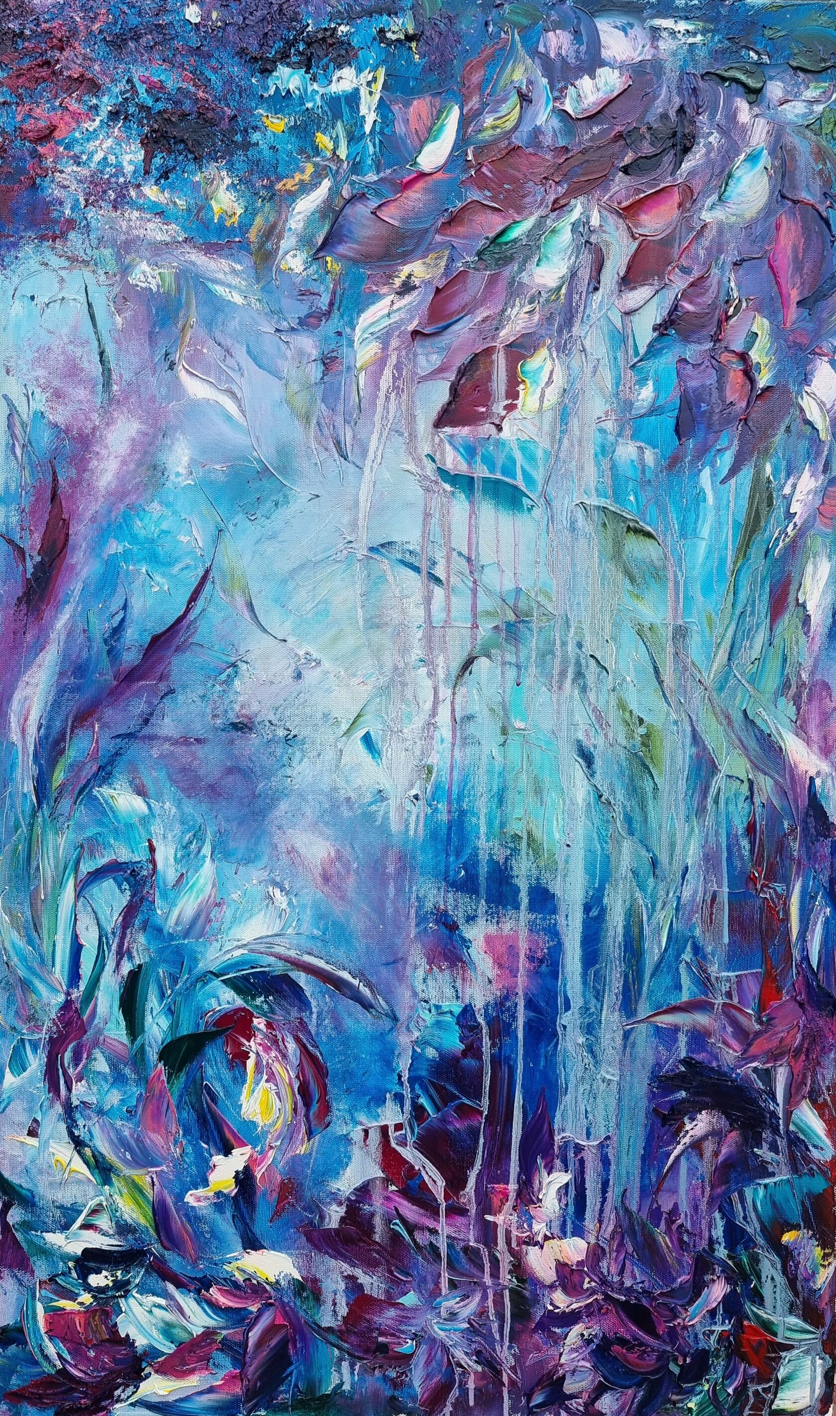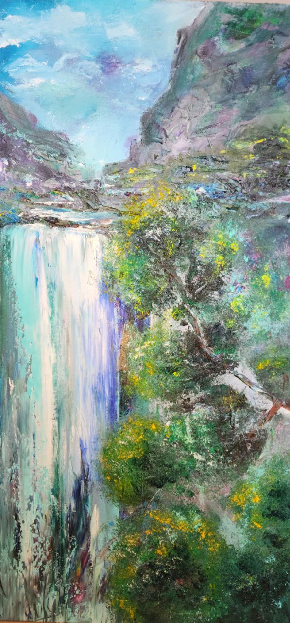 ВОДОПАД, 2025 холст, масло смешанная техника 50*100