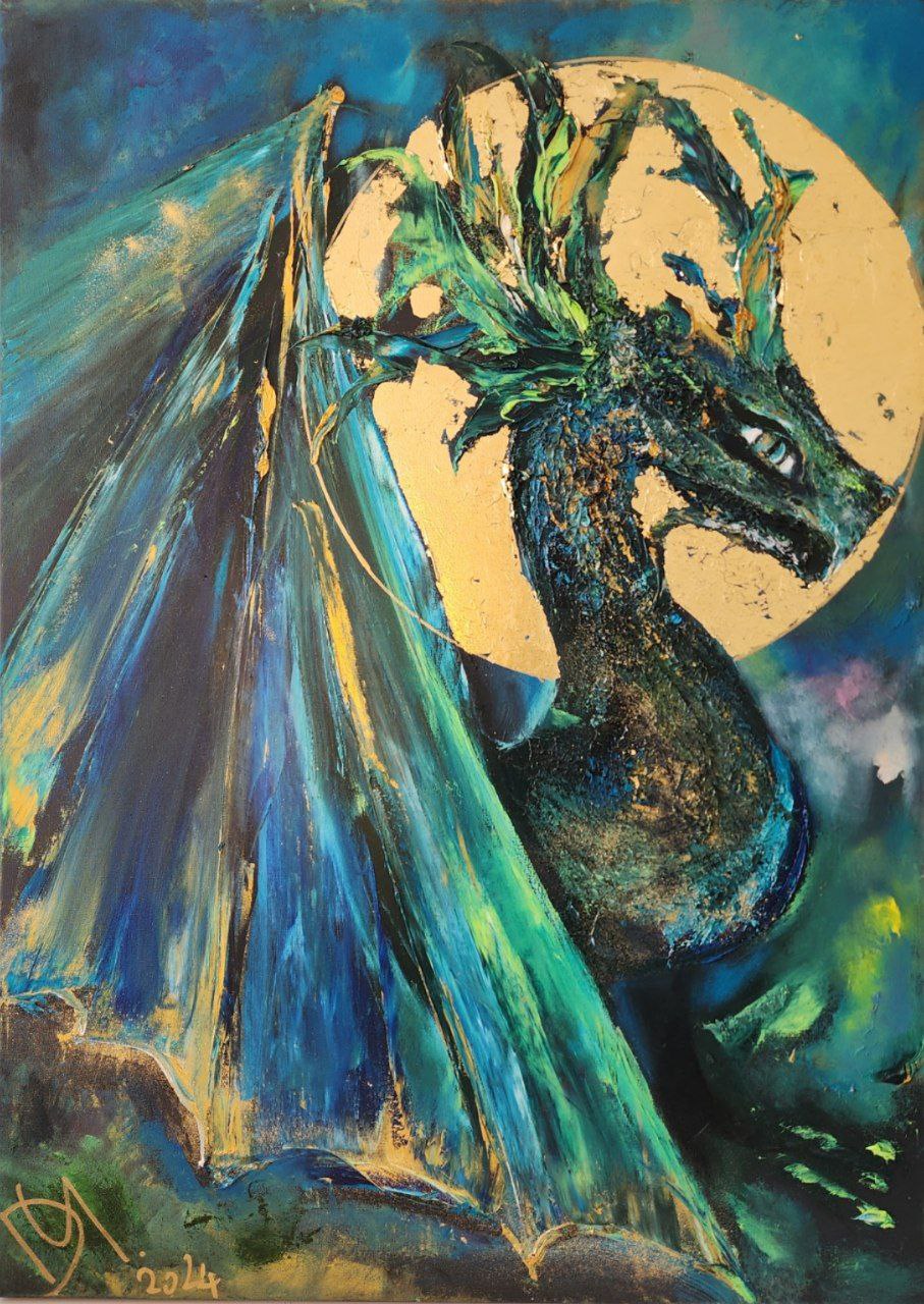 Золотой Дракон 2024 холст масло, золотая поталь 50*60
